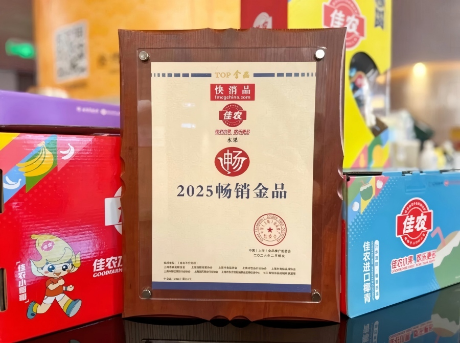 2月10日,2026第26届快消品高层年会在上海圆满举办。佳农水果凭借深厚的品牌积淀与突出的市场表现,荣获 “2025 畅销金品” 殊荣,充分彰显其在生鲜领域的领先地位与市场的高度认可。